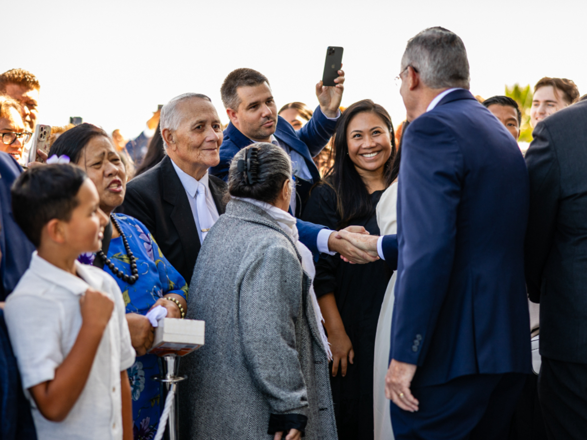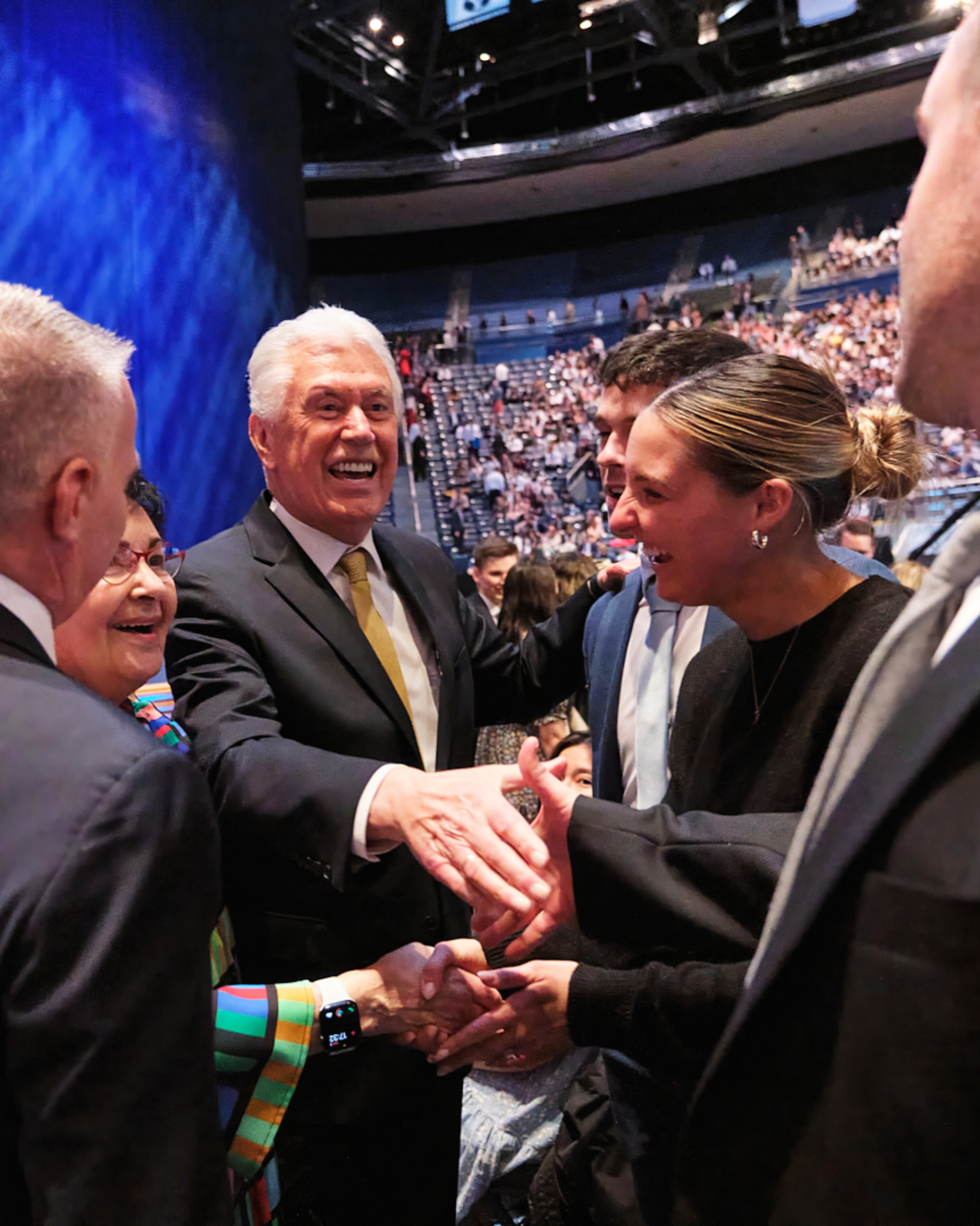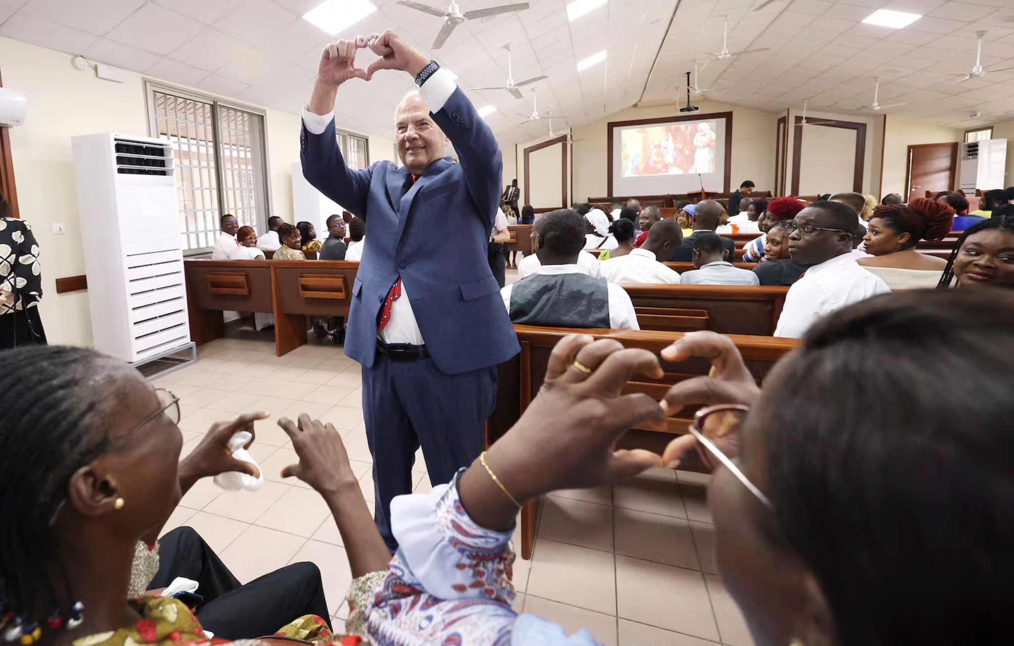 Elder Dieter F. Uchtdorf vom Kollegium der Zwölf Apostel der Kirche Jesu Christi der Heiligen der Letzten Tage und seine Frau Harriet begrüßen die Anwesenden, bevor sie bei der weltweiten Andacht für junge Erwachsene am Sonntag, dem 2. Februar 2025, im Marriott Center auf dem Campus der Brigham Young University in Provo in Utah sprechen.2025 Intellectual Reserve, Inc. Alle Rechte vorbehalten.Die Führer der Kirche sprachen auch mit Vertretern von Regierung und Staat über ihre Liebe zu Christus. Ein Beispiel ist etwa Elder Ronald A. Rasband vom Kollegium der Zwölf Apostel, der Premierminister Robert Beugré Mambé von der Elfenbeinküste im Mai in seiner Privatresidenz in Abidjan besucht hat.