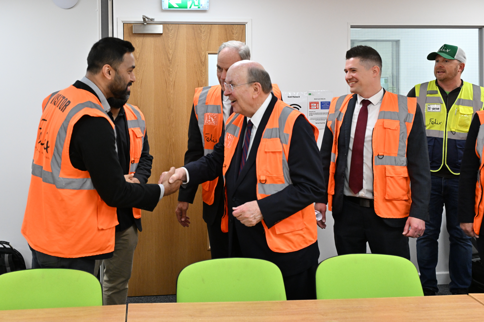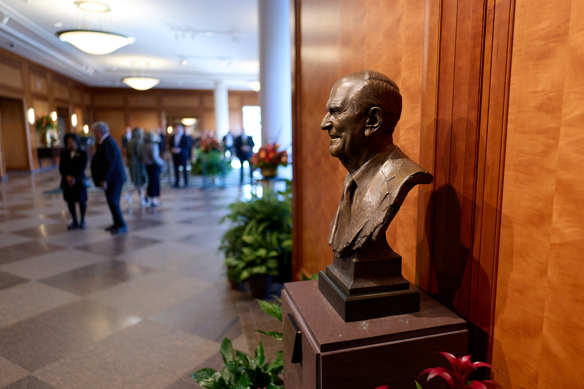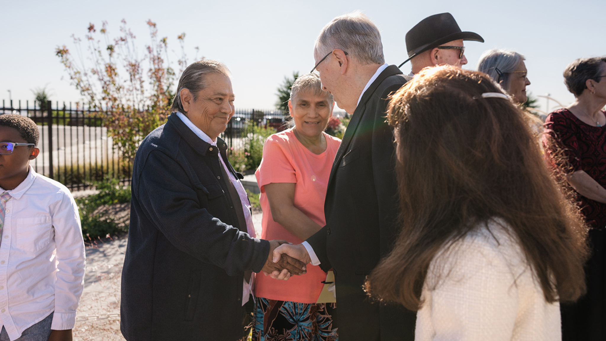 Elder Gerrit W. Gong (links) vom Kollegium der Zwölf Apostel unterhält sich gemeinsam mit Elder Matthew S. Holland von den Siebzigern (hinten links) und Gordon Smith (Mitte), dem Leiter der Gästebetreuung der Kirche, am Donnerstag, dem 13. November 2025, im Joseph Smith Memorial Building mit Rosie Rios, der Vorsitzenden von America250 (rechts).2025 Intellectual Reserve, Inc. Alle Rechte vorbehalten.Am Mittwoch, dem 19. November, erhielt in Michigan die karitative Einrichtung F.I.S.H. in Grand Blanc als eine der ersten eine solche Essenslieferung. Die Stadt Grand Blanc war als eine von fünf Ortschaften auserwählt worden, diese Initiative anzuführen – zum Dank für die umfassende Unterstützung ihrer Bürgerschaft nach der Schießerei und dem Brand am 28. September in einem Gemeindehaus der Kirche Jesu Christi, bei dem vier Menschen starben und acht weitere verletzt wurden.
