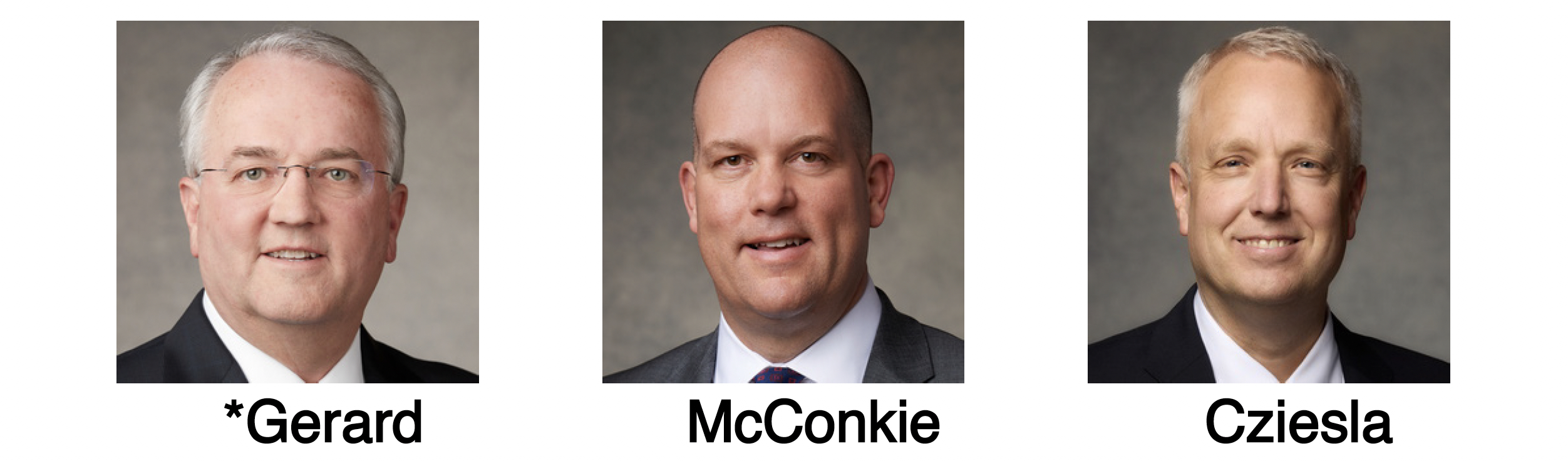 Gebietspräsidentschaft Europa Mitte für 2026/2027, von links nach rechts: Elder Jack N. Gerard, Präsident, Elder James W. McConkie III. und Elder Michael Cziesla