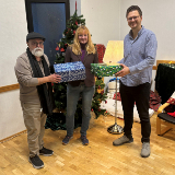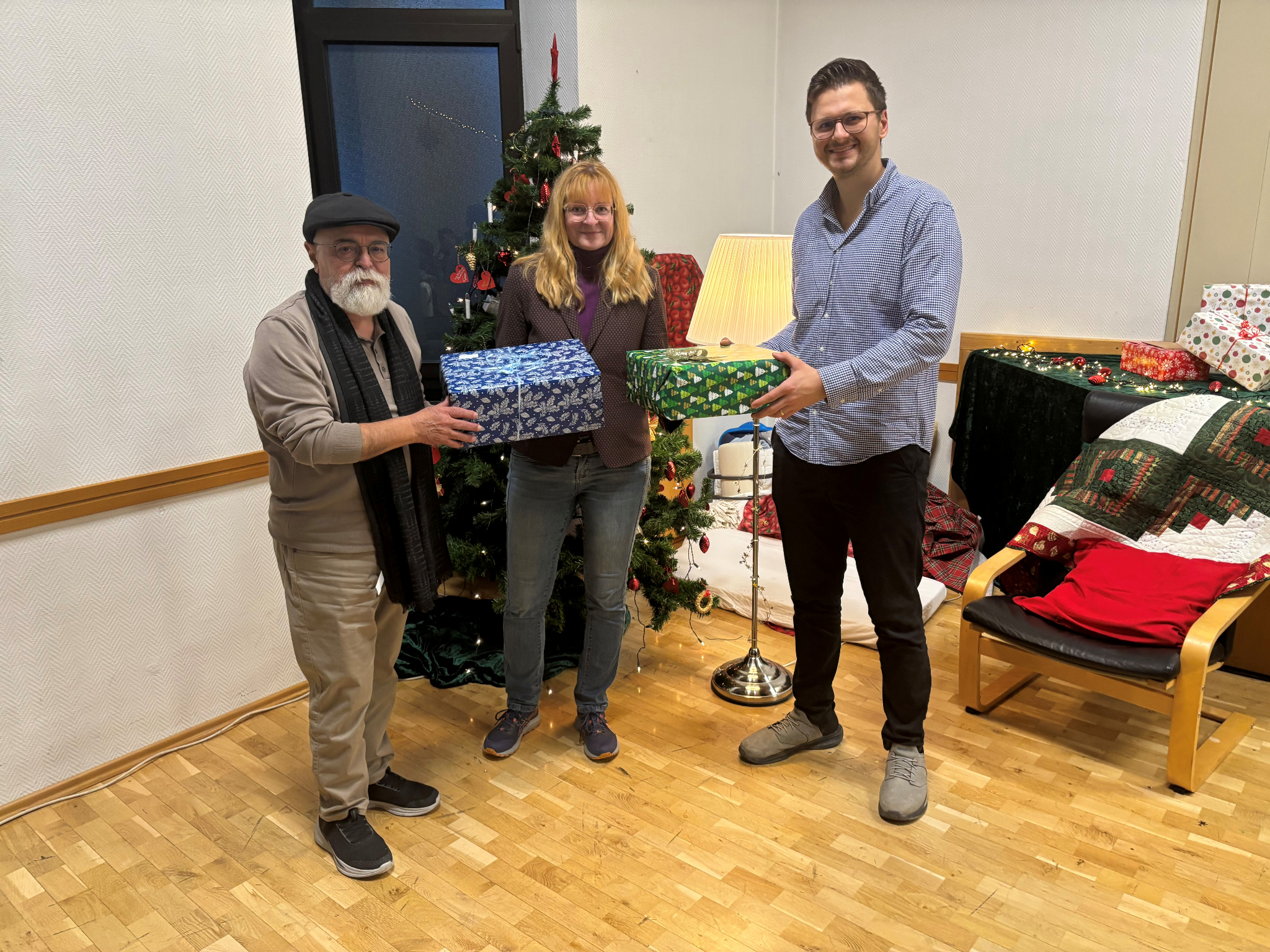 Bei der Adventsfeier am Samstag, den 6. Dezember 2025, im Gemeindezentrum der Kirche Jesu Christi der Heiligen der Letzten Tagen in der Donaustraße nahm Konstanze Fritsch, die stellvertretende Einrichtungsleiterin des Franziskus-Hauses, nicht nur die Päckchen der gastgebenden Kirche in Empfang, sondern auch die der örtlichen Baháʼí-Gemeinde. Weitere Geschenke kommen rechtzeitig vor dem Heiligen Abend von der Neuapostolischen Kirche sowie von der Wallonisch-Niederländischen Kirche.